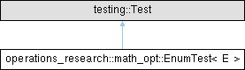 Inheritance diagram for operations_research::math_opt::EnumTest< E >: